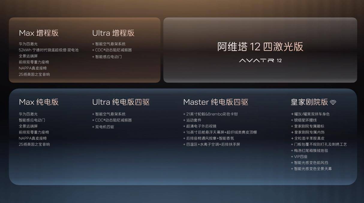 2025年10月18日,阿維塔12四激光版在重慶旁觀者設(shè)計(jì)博物館正式啟動(dòng)預(yù)售,新車以“十項(xiàng)全新升級(jí)”與“十二項(xiàng)同級(jí)獨(dú)享”的硬核配置,搭配限時(shí)預(yù)售權(quán)益,強(qiáng)勢(shì)沖擊30萬(wàn)級(jí)豪華轎車市場(chǎng),為消費(fèi)者帶來(lái)超越期待的新豪華出行體驗(yàn)。