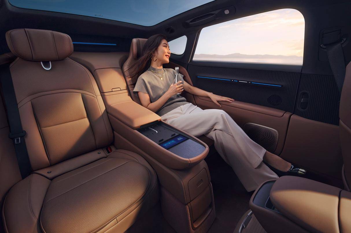 此外,新車搭載全新VIP四座豪華包,后排行政級(jí)座椅支持加熱、通風(fēng)、8點(diǎn)位按摩及5°電動(dòng)調(diào)節(jié),中央扶手島臺(tái)含車載冷暖冰箱與50W無(wú)線快充;配備四溫區(qū)空調(diào)與納米水離子健康氧顏艙(凈化空氣同時(shí)保濕護(hù)膚、柔順秀發(fā));前排雙零重力座椅優(yōu)化造型與材質(zhì),提升腿部支撐與包裹感,緩解長(zhǎng)途疲勞。