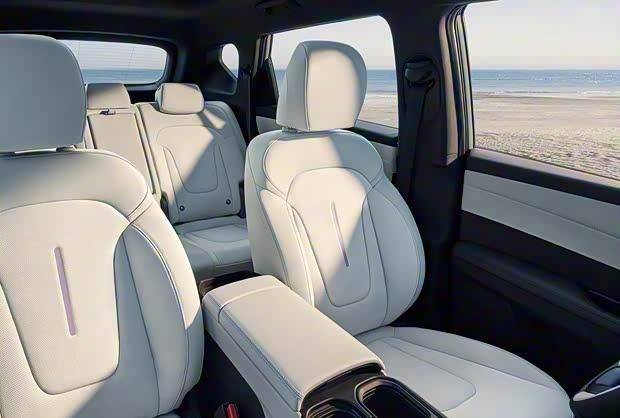 內飾配置上,階梯式設計中控臺配備27英寸4K雙聯屏,搭載高通8295P芯片。采用懷擋設計的中控區域設有豐富的儲物空間及手機無線充電功能。座椅采用仿麂皮材質包裹,前排配備加熱通風功能,主駕駛席帶有主動側翼支撐。后排座椅支持28度調節和4/6比例放倒,后備廂容積可從506升擴展至1540升。
