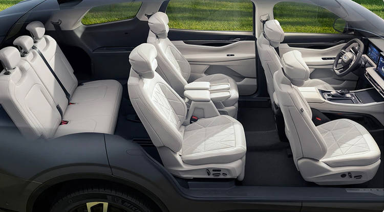內部空間上,福特銳界L是同級唯一具備2-2-3和2-3-2座椅布局可選的大7座SUV。2-2-3布局下,二排座椅可使用電動調節,更有三種座椅一鍵調節模式,其中“一鍵舒躺模式”可自動調節至“座椅向后41度、腿托向上50度”的近零重力模式,帶來媲美頭等艙的乘坐體驗。二排座椅還有同級少有的加熱、通風功能,很好地照顧到了老人、孩子的出行體驗。2排通道寬至200mm,比一些MPV還寬,成年人可以輕松走進第三排。