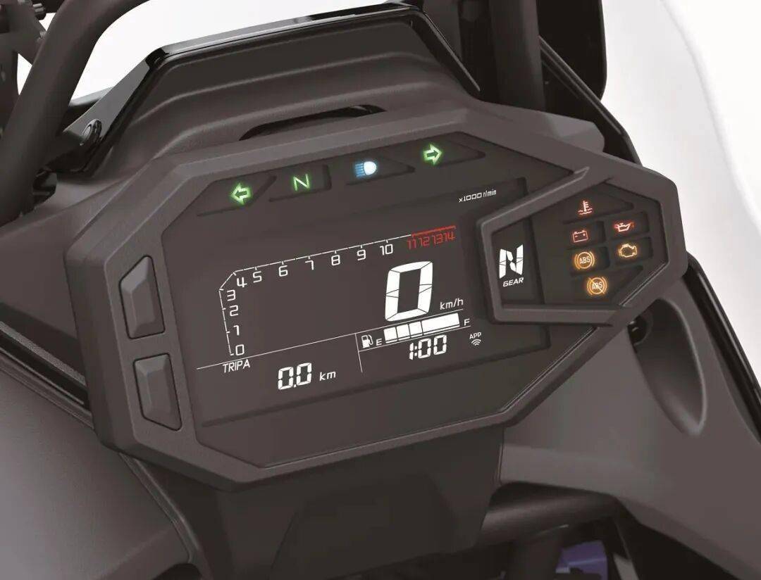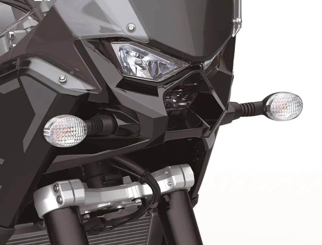 外觀方面,車頭部采用類似Z500的設計語言,三重大燈前臉,非常像機器人的頭部,采用無鳥嘴設計,無鳥嘴設計最近幾年又開始重新流行,側板造型設計簡約干練,符合其拉力車的定位。