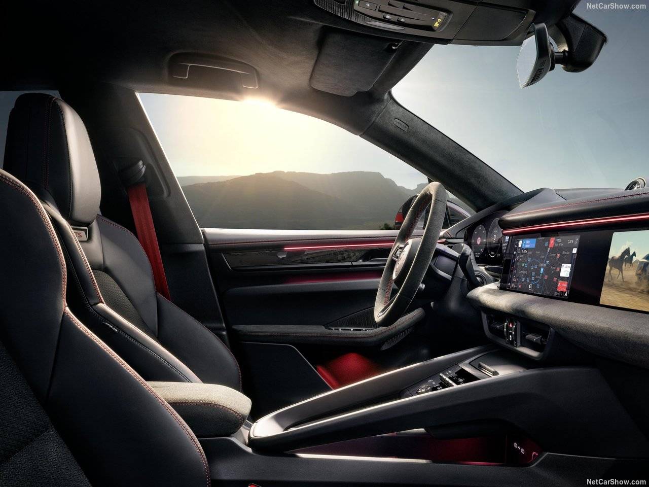 和張揚外觀一樣,電動Macan GTS的內飾也有更運動的細節,例如保時捷賽車級的微纖維RaceTex材料,就鋪陳在方向盤、中控臺、車門扶手和儀表盤,18向電調運動座椅的靠背、坐墊也使用RaceTex包裹。另外,保時捷允許車主根據外形顏色選擇不同的內飾配色,包含裝飾縫線、安全帶和GTS字幕都可以與車漆呼應,同時也有碳纖維套件以供加裝。