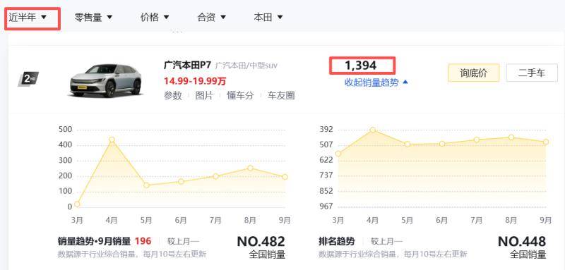 上述用戶對P7降價動機的質疑并非空穴來風,其背后是這款戰略車型上市半年來的銷量一直未有起色。作為廣汽本田電動化轉型的首款戰略產品,P7于今年4月15日正式上市,并在隨后的上海車展完成公眾首秀,上市初期官方曾宣稱“24小時訂單達5365臺”,營造出市場熱捧的態勢。