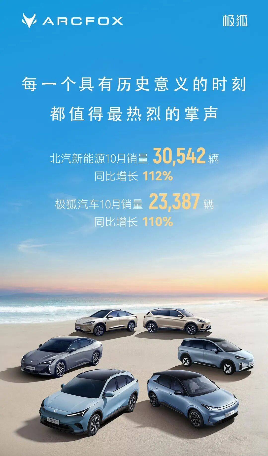 極狐10月銷量突破23,387輛,同比增長110%,創歷史新高;今年1-10月,極狐累計銷量達到111,198輛。極狐近期銷量的猛增,主要在于純電小車極狐T01的上量;10月底,極狐又推出了新阿爾法T5,這款車型最大的賣點是新增了增程版車型,或將為極狐銷量帶來更大的增長。