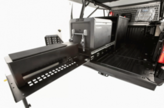 外觀上,除了新輪轂和升高的車身姿態(tài),改裝還包括全新防滑板、越野后保險杠、救援點、絞盤、額外的LED燈組,以及與早期氫能概念車相似的白藍(lán)配色涂裝。同時還有彈出式車頂帳篷和可三向開啟的后貨廂蓋,尾門上還搭載一個全尺寸備胎。