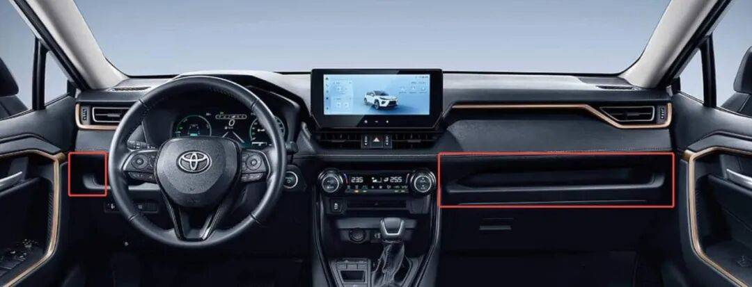 內(nèi)飾是純黑色,搭配了金色的飾條,有些許的豪氣。比較特別的設(shè)計(jì)是,中控臺(tái)上掏出了儲(chǔ)物空間,零碎物品多的朋友會(huì)很喜歡這樣的設(shè)計(jì)。