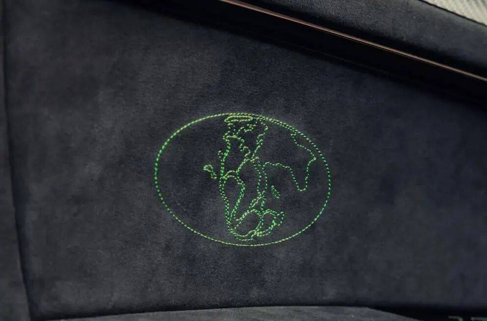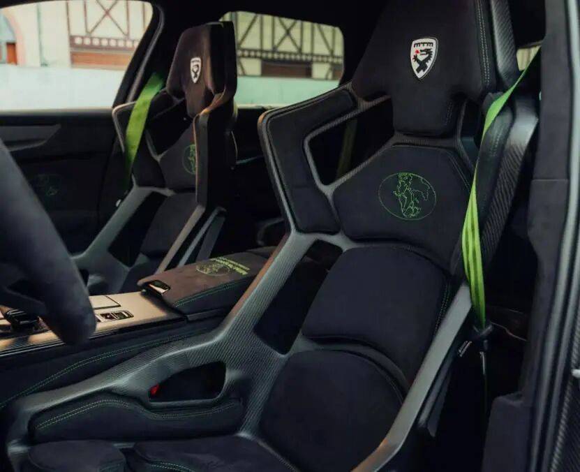 內飾則延續強烈的運動氛圍。座艙前排配備碳纖維桶形座椅,后排也同樣換裝同款座椅,確保所有乘客在高速行駛時都能獲得穩固支撐。定制皮革、Alcantara材質與精致的撞色縫線覆蓋了車內幾乎所有表面,賦予車輛濃郁的賽車風格。