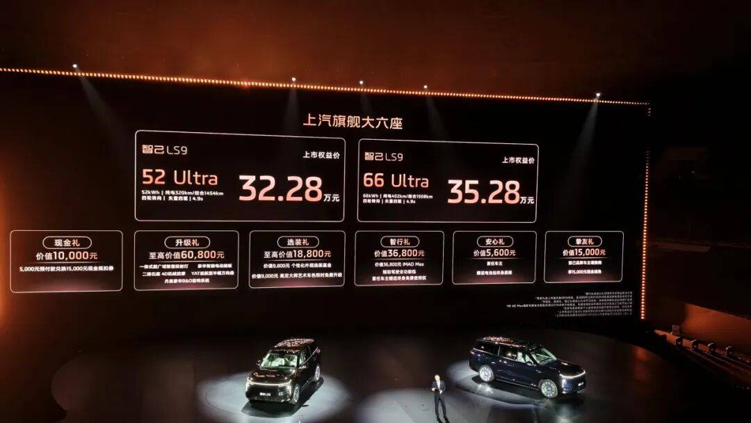 從價格帶來看,智己LS9 32.28萬~35.28萬元的權(quán)益價區(qū)間,成功避開了理想L9、問界M9(40萬元以上)的高價區(qū)間,與問界M8六座增程版(36.98萬元起)、領(lǐng)克900插混版(30.99萬元起)形成直接競爭。相較于問界M8六座增程版入門款36.98萬元的定價,智己LS9以更低價格提供了更長的純電續(xù)航(402km vs 201km)與更強的動力性能(4.9s vs 5.2s),性價比優(yōu)勢明顯。而相較于純電車型樂道L90,智己LS9以更高定位聚焦對續(xù)航無焦慮、追求豪華體驗的中高端用戶,形成錯位競爭。
