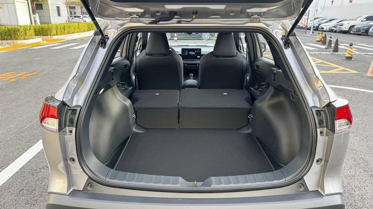 空間體驗方面,憑借2640mm軸距,全新卡羅拉銳放實現了“參數不搶眼但體驗出色”的空間表現。前排調好駕駛坐姿后,后排腿部與頭部空間充足,身高185cm的乘客也能舒適乘坐。常規438L的后備箱容積可輕松容納多個行李箱或嬰兒車,后排座椅6:4比例放倒后能裝載露營裝備、折疊自行車等較大物品。