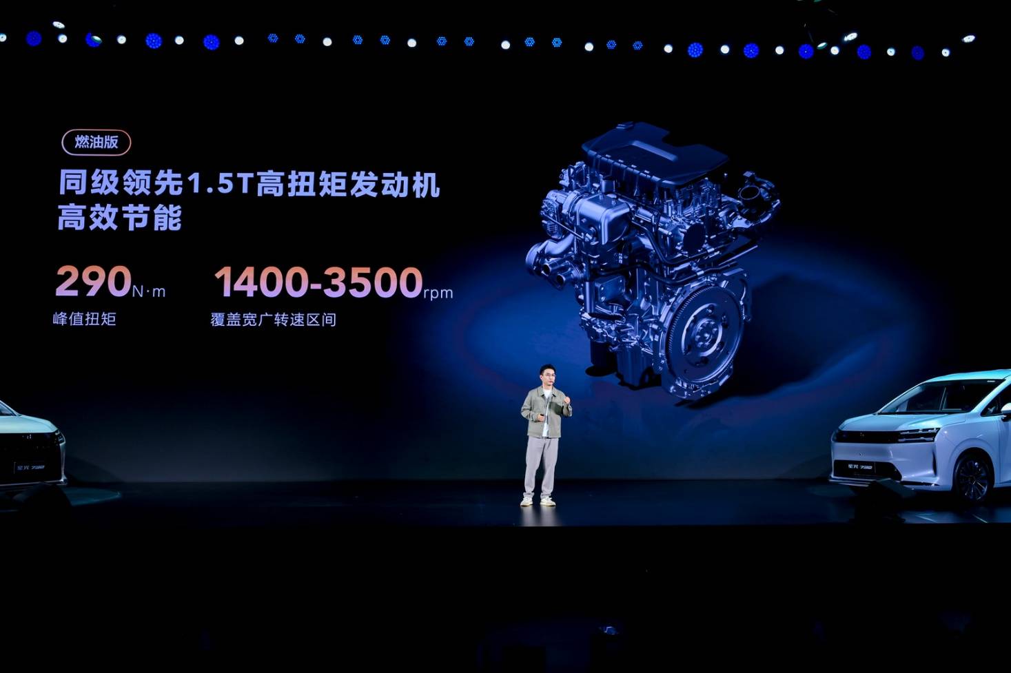 燃油版車型搭載了1.5T渦輪增壓發(fā)動(dòng)機(jī),峰值功率130kW,峰值扭矩290N·m,傳動(dòng)系統(tǒng)匹配6速手動(dòng)或CVT無級(jí)變速箱,兼顧動(dòng)力性與可靠性,是創(chuàng)富家庭的務(wù)實(shí)選擇。