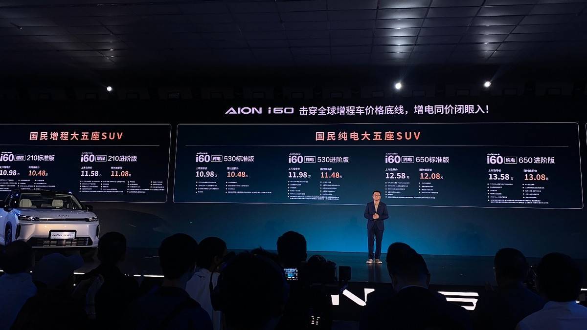 11月16日,AION i60正式上市,新車限時價10.48-13.08萬元,其中增程版車型售價10.48-11.08萬,純電車型的售價則為10.48-13.08萬。