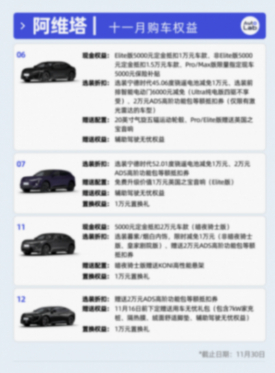 從我們統(tǒng)計的權益來看,本月各家車企也都沒有因為進入11月而減小力度,部分品牌更借勢開啟了新一輪營銷。