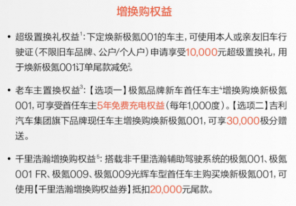 極氪則在原有置換補貼基礎上,還為購買初代001的老車主提供了終身免費充電權益轉移、整車終身質保權益轉移等活動。