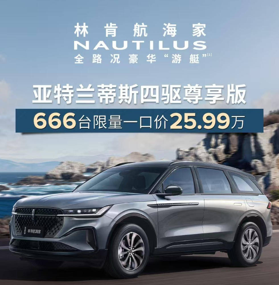 11月21日,在2025廣州車(chē)展上,林肯航海家亞特蘭蒂斯四驅(qū)尊享版正式上市,限量一口價(jià)25.99萬(wàn)元,限量666臺(tái)。