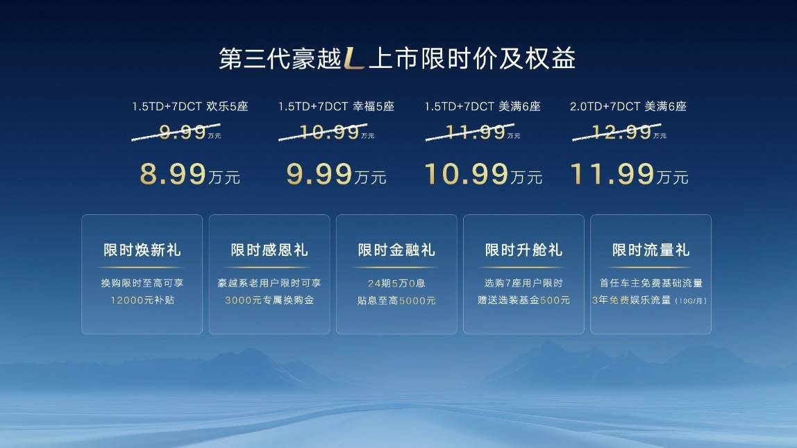昨晚,在全球最大的花型人工島——儋州海花島,吉利第三代豪越L正式上市,限時價低至8.99-11.99萬元。