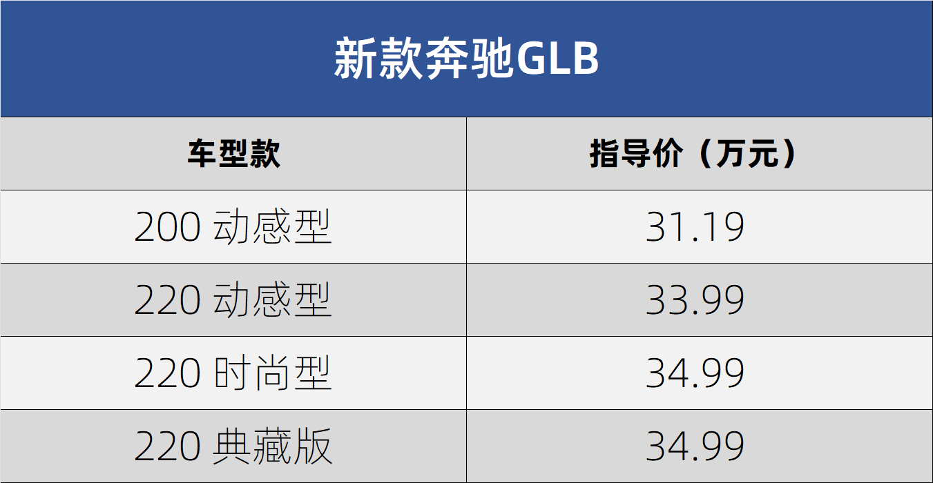 日前,我們從北京奔馳官方獲悉,新款奔馳GLB正式上市,新車針對配置以及車款進行調整,不再提供四驅版本,官方售價區間為31.19-34.99萬元。
