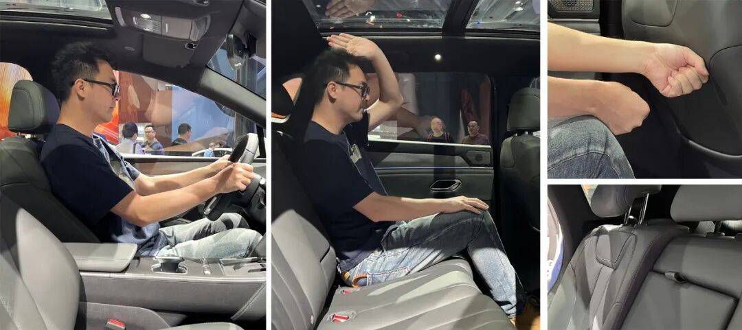 空間表現(xiàn)上,我1.83m的身高在車內(nèi)體驗(yàn),前排和后排頭部空間都十分寬敞,后排腿部空間也是足夠優(yōu)秀。尤其乘客的腳還能進(jìn)一步伸展到前排座椅底下,靠背也能夠調(diào)節(jié),從而提升長(zhǎng)途乘坐體驗(yàn)。