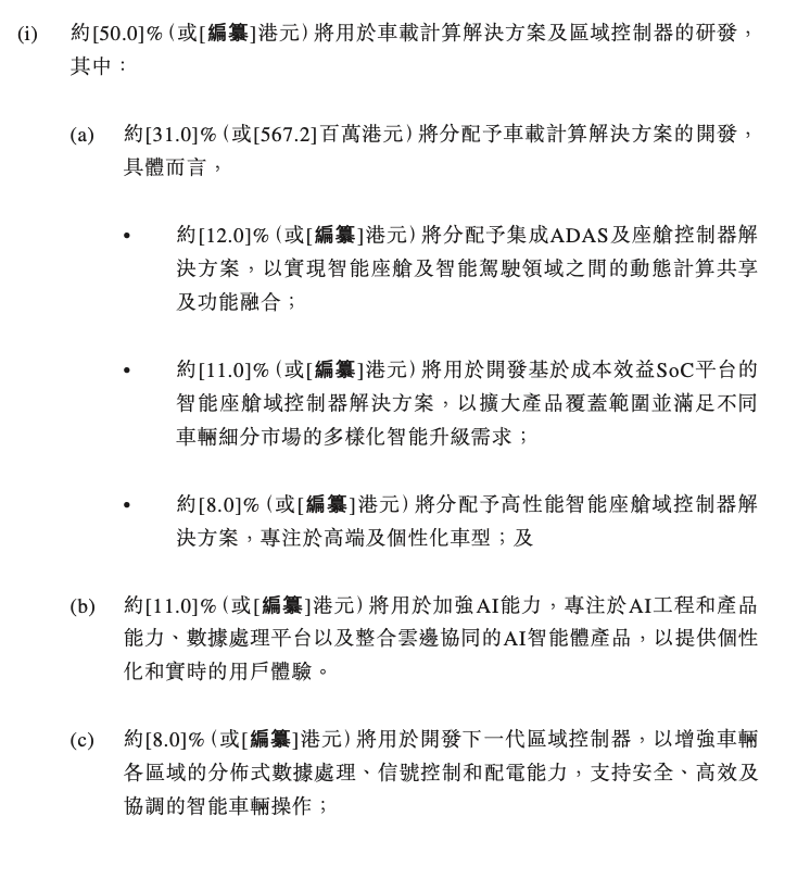 招股書顯示,其擬將50%本次全球發售的募集資金用于車載計算解決方案及區域控制器、以17%的資金用于提升生產能力、23%用于加強國際化能力、10%用于補充營運資金及其他一般企業用途。