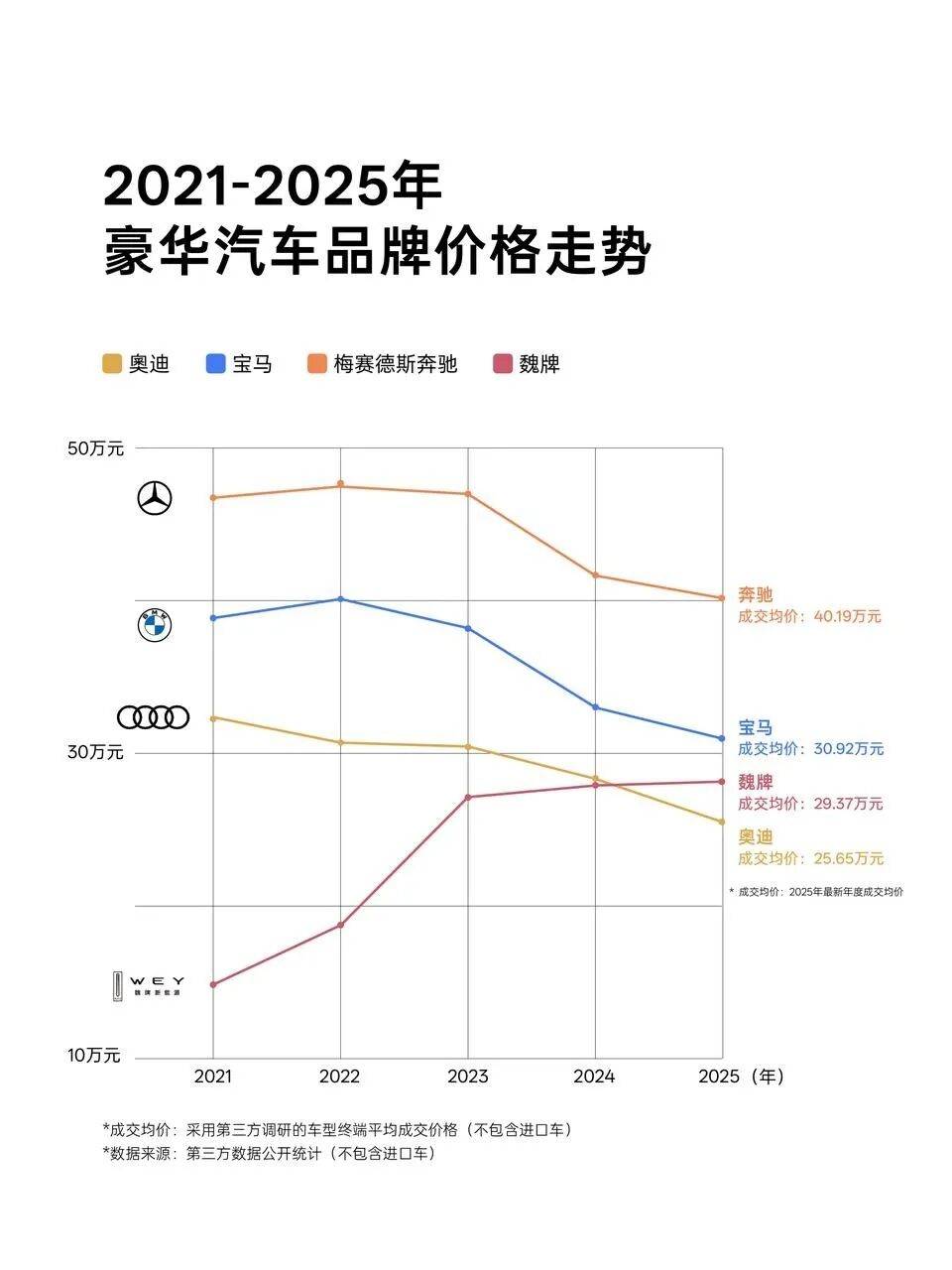 銷量增長的背后,更值得關注的是其平均單臺成交價。從2021年約15萬元,攀升至當下的29.37萬元,不僅超越了奧迪的25.65萬元,更是逼近寶馬的30.92萬元。
