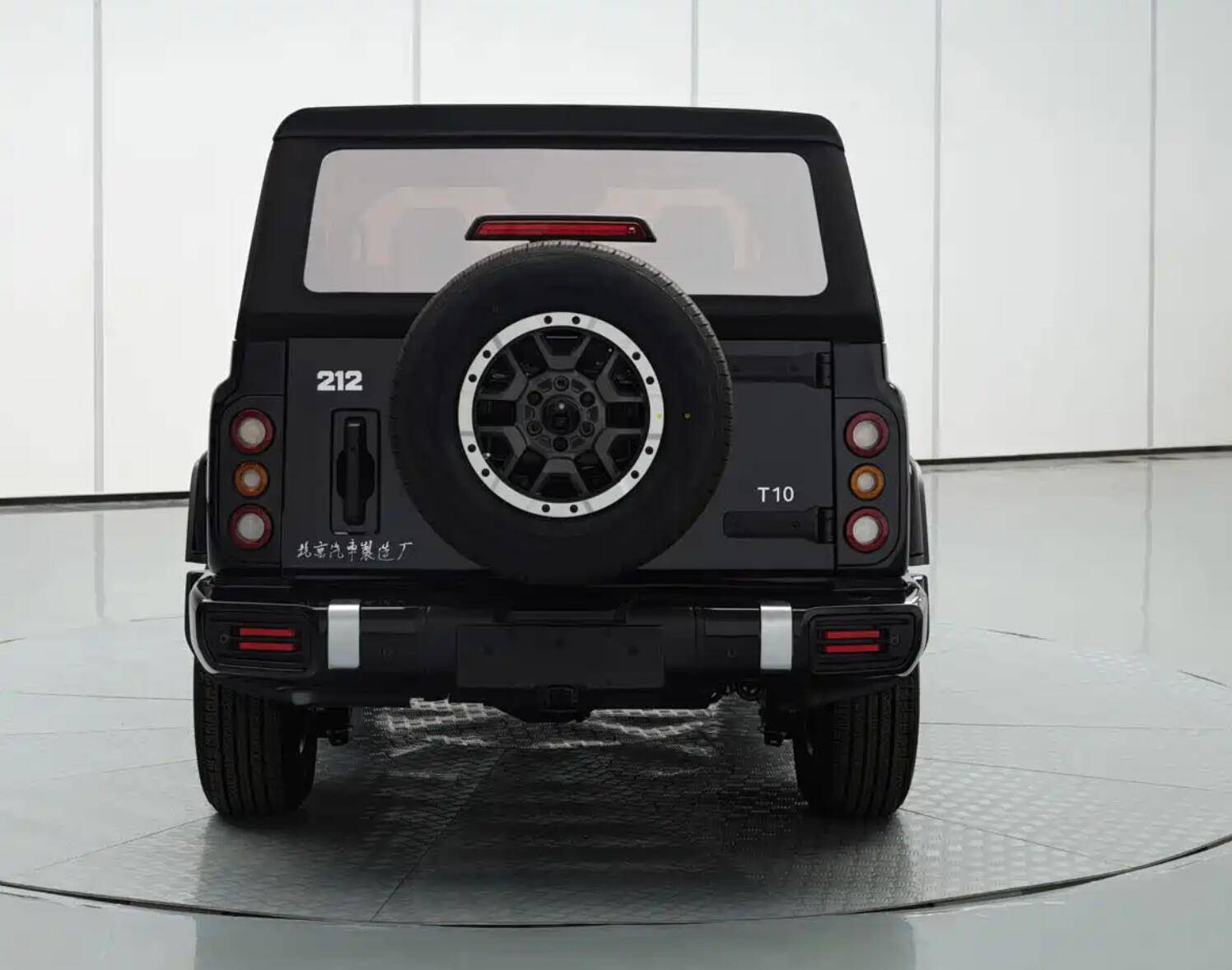 212 T10也出現在工信部申報信息中,新車還是保持硬派越野的設計風格,蚌式發動機蓋,圓形雙大燈,還有加粗前保險桿和絞盤,可選裝防空燈,典型中式“硬漢”的氣質。該車型采用兩門版設計,側開式尾門,圓形外掛式輪胎,越野氣質十足。