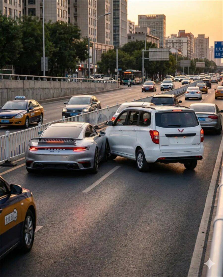 在擁堵的城市博弈場中,保時捷911處于絕對的弱勢地位。因為昂貴的維修費用,它必須時刻保持防御姿態(tài)。周圍的車輛(包括出租車、外賣車)都知道這一點,從而對其實施“路權(quán)擠壓”。