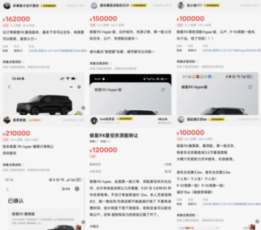 “極氪9X現在已經變成硬通貨了,訂單加價8.8萬元出手還算少的,出口的訂單據說能加到20多萬元。”一位汽車博主在社交媒體上這樣寫道。在閑魚等二手交易平臺上,極氪9X訂單轉讓市場近期的活躍度確實令人驚嘆:Hyper版車型的訂單加價幅度高達8-21萬元,即使是普通版也普遍存在2萬至5萬元的加價。