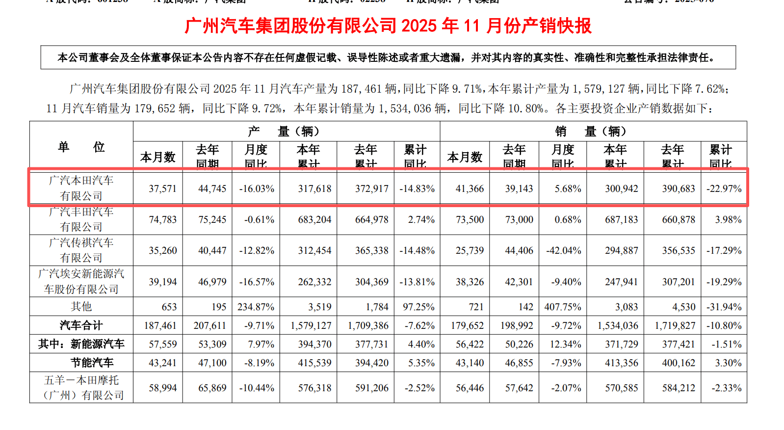 按照【本田中國】發布的數據,11月Honda在中國的終端汽車銷量為5萬輛,同比環比繼續大幅下滑。廣汽集團的產銷數據顯示,廣汽本田11月銷量為41366臺,而東風本田的11月銷量暫時未公布,據公開報道,其10月銷量為29678臺。