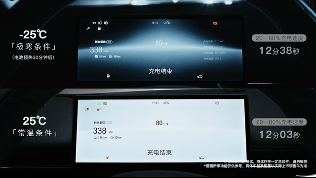 嵐圖追光L直接用“真實力”攻克了該用車痛點,通過一場極寒環境下的實測給出了最硬核的回應。在模擬東北冬季氣候的冷凍倉中,將追光L置于零下25℃的環境里靜置8小時,車身結滿冰層,依然可以順利啟動。更關鍵的是,在如此極寒的環境下,其SOC 20%-80%充電時間僅需12分38秒,與常溫條件下充電速度相差僅約30秒,徹底打破新能源車“冬天充電比等雪化還慢”的魔咒。