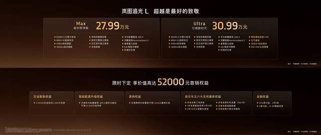 即日起,選購嵐圖追光L的用戶可享受價值高達5.2萬元的首銷權益。追光L的到來,不僅以領先的三電技術以及極寒環境下穩定快充的硬核實力破解了北方用戶冬季用車焦慮,更在智能化、底盤操控等核心維度,打造了旗艦級體驗,用技術重塑豪華標桿,為追求真正價值的用戶,提供了一份超越期待的答案。