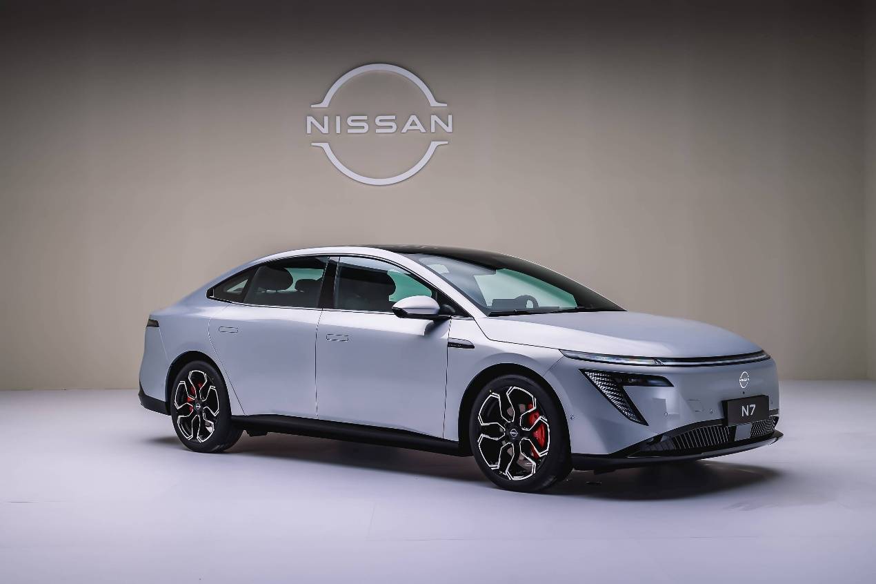 首先來看外觀,東風日產N7采用了一套全新的設計語言,有可發光的車標,貫穿式前后燈帶,隱藏式車門把手,一眼就能看出這是一款新能源車。