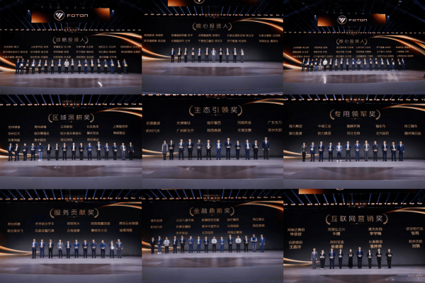 此次商務年會上,為凝聚合作伙伴共創未來的信心與決心,福田汽車常務副總經理鹿政華主持了核心投資人和戰略投資人授牌儀式,現場為45位長期與公司同頻共振的戰略及核心投資人授牌,他們將獲得"專屬政策支持、專業人才培養、戰略協同共創"等全方位賦能。同時,大會還對全年表現優異的經銷商分別授予"區域深耕獎"、"生態引領獎"、“專用領軍獎”、"服務貢獻獎"、“金融領航獎”、“互聯網營銷獎”榮譽。