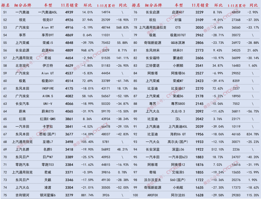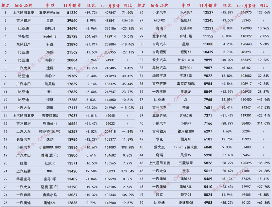 整體而言,11月轎車市場的競爭已聚焦“新能源+差異化定位”,無論是下沉市場的宏光MINI,還是中高端領域的新勢力車型,唯有精準匹配用戶需求,才能在年末收官戰中占據主動。