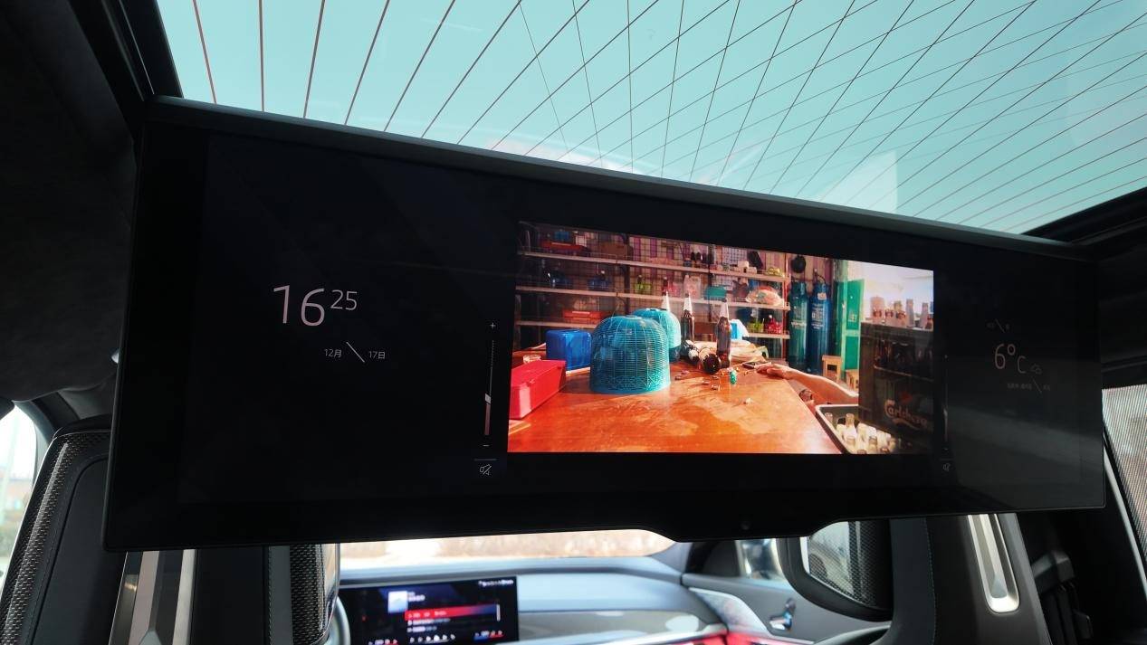 當然,作為7系,后排才是它的終極秀場。當我換到后座,關上門,世界瞬間安靜下來。我找到了后窗上那著名的矩陣式幾何暗紋,光影透過時,的確如蘇州博物館的窗欞,朦朧了窗外的繁雜,卻讓車內的光線更加柔和靜謐。放下靠背,打開31英寸的懸浮式巨幕,配合Bowers & Wilkins音響,這里立刻變成了一個移動的私人影院。最關鍵的是,這塊巨幕被牢牢固定在前排椅背上方,無論車身如何動態,它都紋絲不動,這種穩固帶來的安全感,是任何晃動的大屏都無法比擬的。