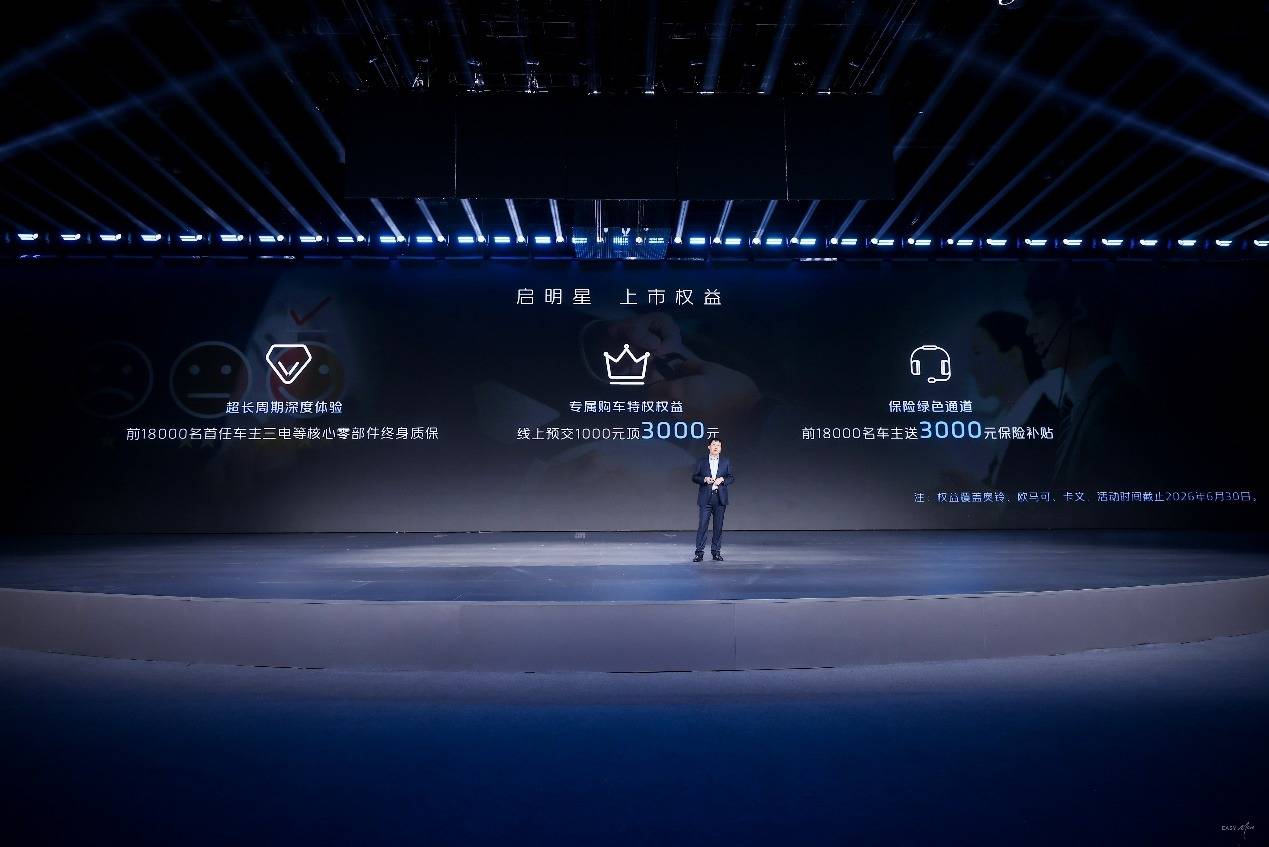 生態服務方面,啟明星構建全場景增值服務生態體系,精準匹配不同客戶需求:針對組織客戶,推出含8年/80萬公里精養、智檢、一站式托管維修的整車打包服務;針對個人客戶,提供靈活的單項或套餐服務,會員享專屬折扣,實現省心省錢。金融保險方面,聯合京東安聯、平安等頭部險企穩定承保;同時布局租賃、品牌認證二手車等創新業務,升級智福管車系統,搭建完善的二手車平臺生態。數智層面,搭載高算力平臺化T-BOX,智能車機全系標配,實現全域遠程OTA;補能方面,完善經銷商新能源運營生態,讓用戶更便捷。