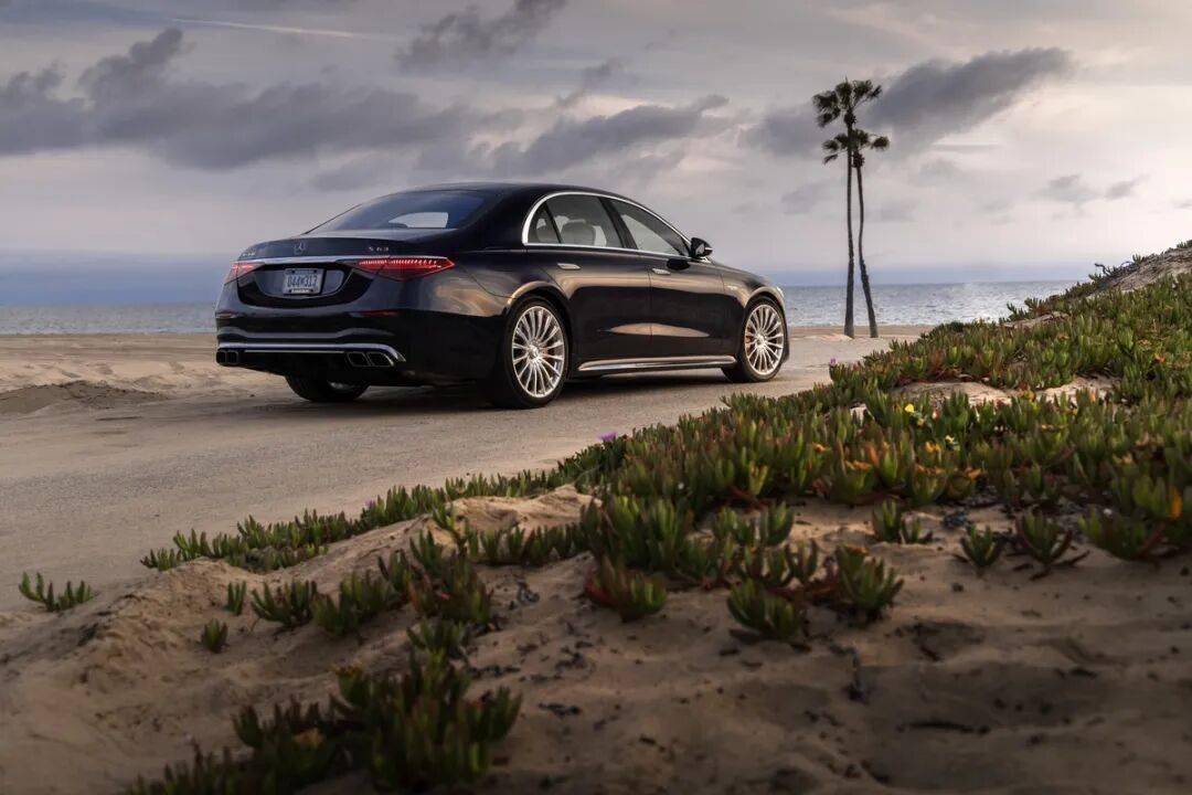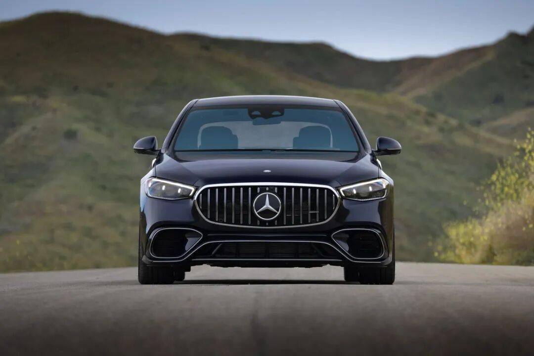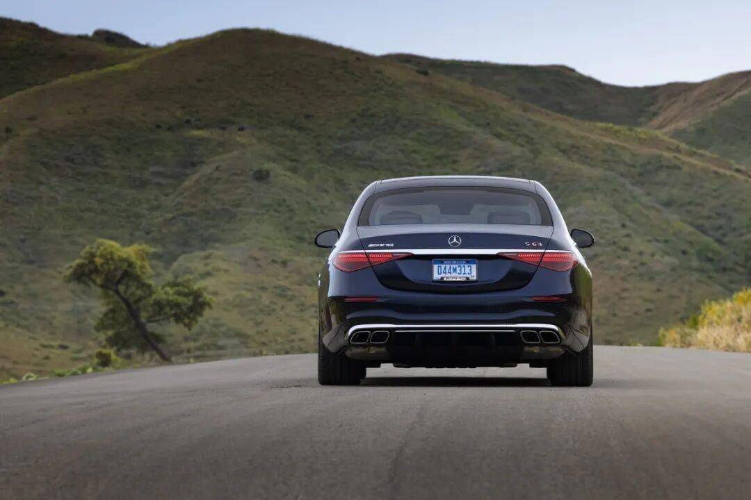 S63 AMG EP采用AMG垂瀑式格柵,搭配銀色鍍鉻/黑色AMG徽章取代經(jīng)典三叉星徽,引擎蓋兩側(cè)設(shè)大尺寸散熱口。21英寸AMG鍛造輪轂、側(cè)門檻專屬標(biāo)識(shí)、后擴(kuò)散器及梯形雙邊四出排氣,強(qiáng)化運(yùn)動(dòng)感。