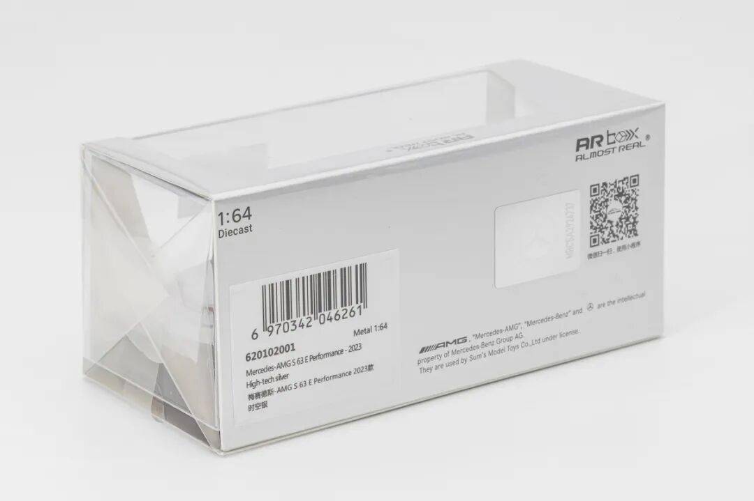 產(chǎn)品的包裝沒啥可說的,設(shè)計(jì)非常簡(jiǎn)潔,銀色開口紙盒,亞克力罩,塑料底座一應(yīng)俱全,產(chǎn)品還配送了一張收藏卡,其實(shí)就是AR直營店的二維碼。黑色塑料底座上有移印的車模信息。值得一提的是像AR這類大品牌,肯定都會(huì)有奔馳原廠授權(quán)。
