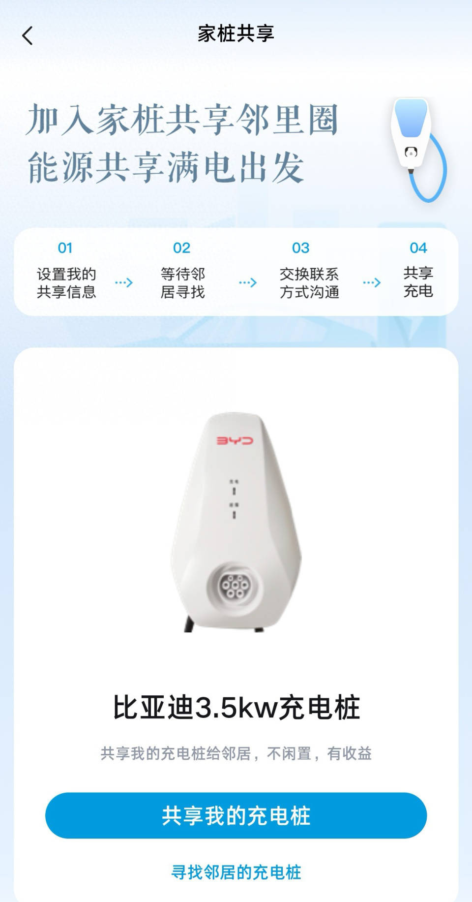 日前,APP就上線了家庭充電樁共享服務,讓同社區的比亞迪車主實現“鄰里互助”。其實原理非常簡單,那就是車主們的手機上都有定位功能,那么既然有這個功能,有家充樁的車主,就可以將自己的家充樁信息添加上去,比如充電功率、安裝地址、是否閑置等。周邊的比亞迪車主們,打開手機車控APP,搜尋附近的充電樁,同小區或者同社區的比亞迪家充樁就顯示在APP上了。