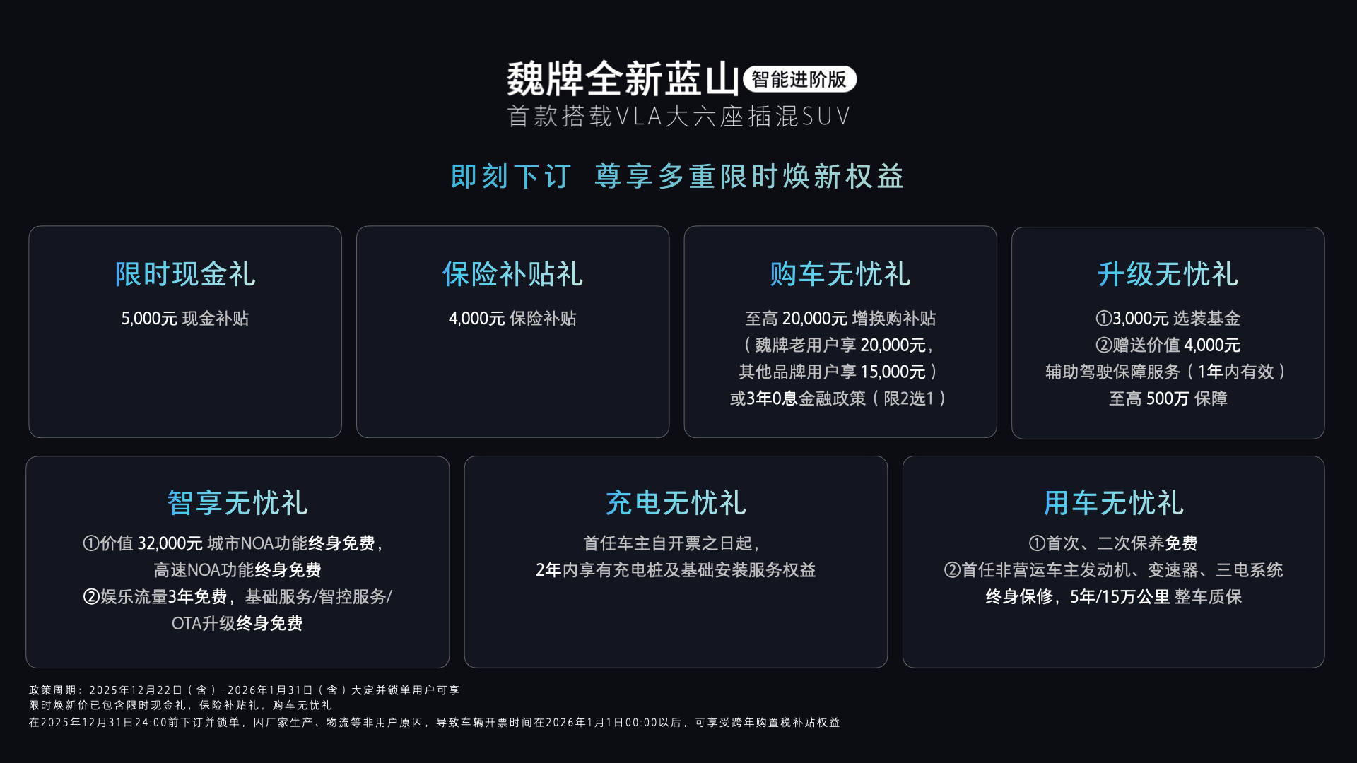 12月22日,魏牌藍?智能進階版上市,共推出3款車型,統一零售價為29.98-32.68萬元,限時煥新價27.58-30.28萬元。智能進階版車型搭載VLA大模型,提供全新?代CP Master輔助駕駛系統。Hi4性能版智能電混四驅,新增阻尼預瞄功能,提前識別減速帶等路?凸起并調整懸架阻尼,提升底盤舒適性。