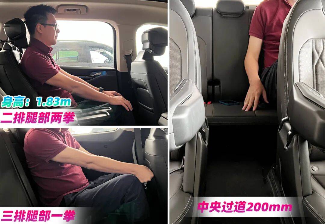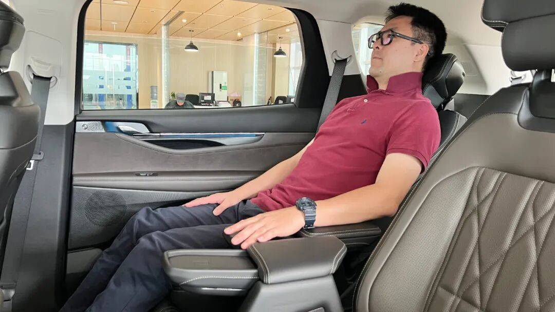 我個人喜歡2-2-3的布局,中排座椅寬大舒服,而且扶手還能收納可騰出200mm的過道。當然,二排座椅少不了零重力模式,通風、加熱功能也不在話下。第三排我試了試,也是十分寬敞,要知道我身高是1.83m。
