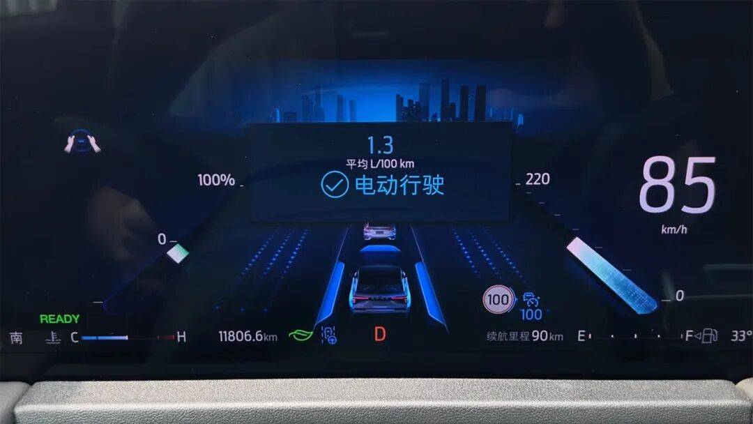 當然,這套系統(tǒng)還可以根據(jù)路況進行純電行駛,或者全力運行。我開了幾十公里,它的實際能耗也就6L級/100km左右,加的92號汽油,加滿一箱油可以跑接近1200km。重點是這車在節(jié)假日跑長途很好用,畢竟不需要排長隊充電,更不用擔心續(xù)航打折,而且每公里的費用也就大概5-6毛錢。
