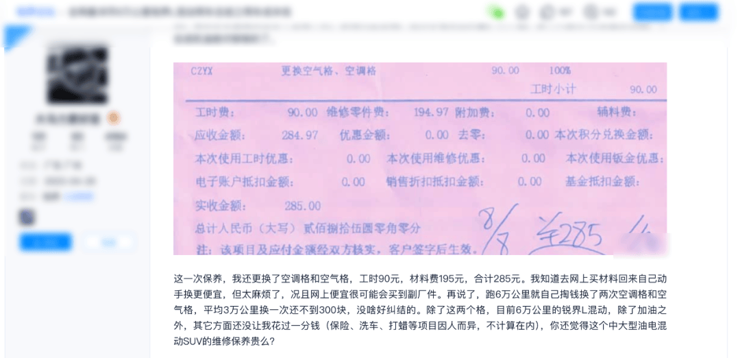 另外,有開了6萬公里和10萬公里的車主都分享了自己的用車成本,每一萬公里保養(yǎng)成本大概也就360元左右,期間除了加油都沒有什么花費,相當劃算了。