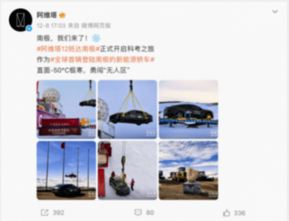 爭(zhēng)議源于此前在社交平臺(tái)的宣傳表述,其稱(chēng)阿維塔12作為“全球首輛登陸南極的新能源轎車(chē)”,將“直面-50℃極寒”開(kāi)啟科考之旅。但這一宣傳很快被網(wǎng)友指出漏洞,當(dāng)前南半球正值夏季,南極中山站的實(shí)際氣溫與“極寒”描述存在巨大差異。