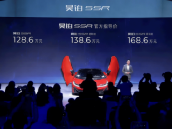 在廣州的一家展廳里,一臺名為昊鉑SSR的電動超級跑車靜靜地停著,它擁有鷗翼門、全碳纖維車身和快如閃電的1.9秒百公里加速。然而,最引人注目的,是它高達128.6萬元人民幣(約17.7萬美元)的標價。