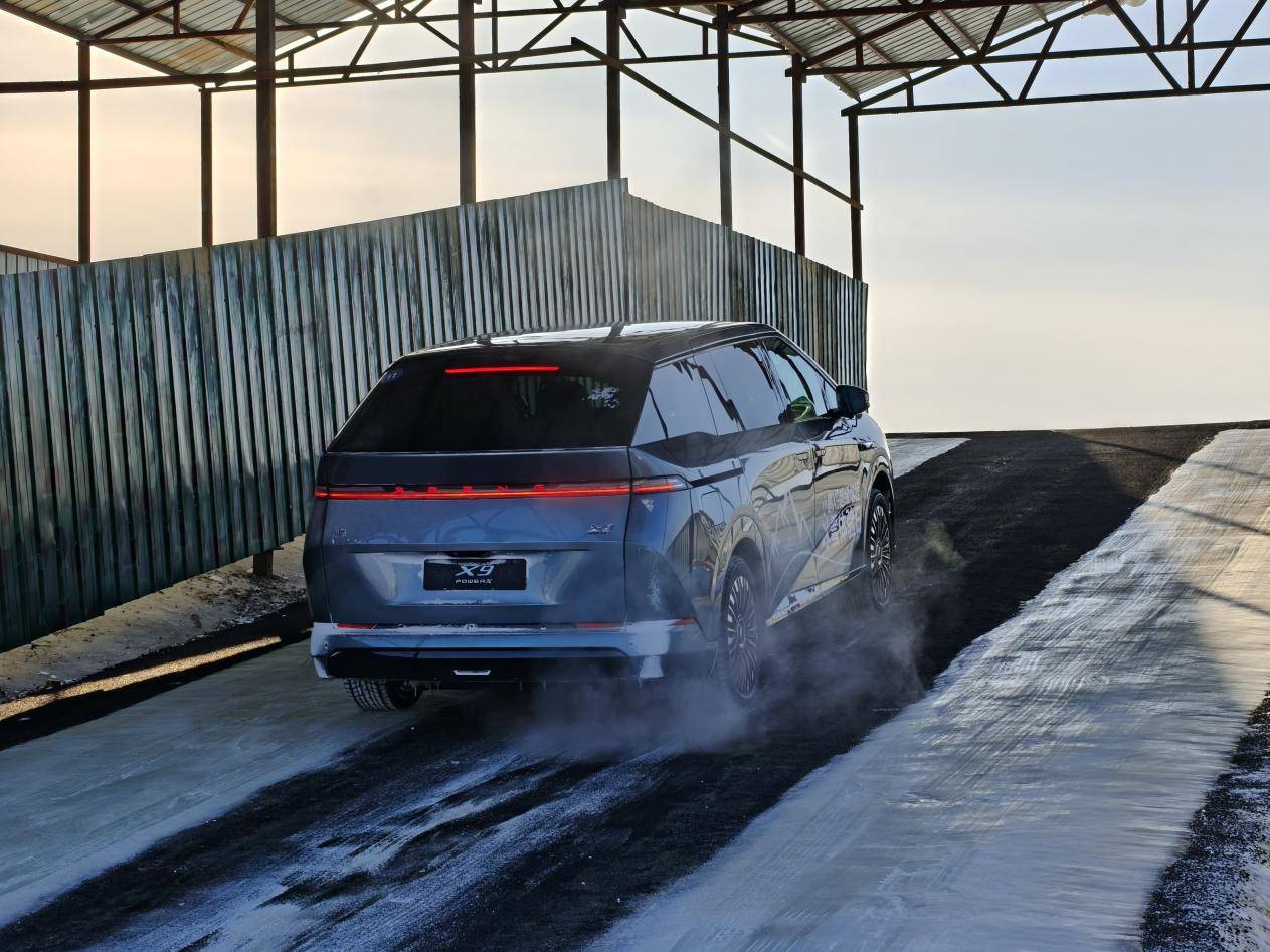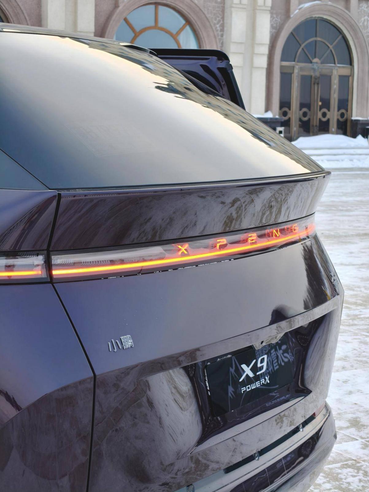 增程版在外觀上主要有三處區別:一是主動式開閉進氣格柵,取消了被官方稱為 “能量晶石” 裝飾的星蝶漸進前格柵;二是兩側導風槽變成豎直細長造型,如果選淺色車身漆的話,視覺效果更為立體;此外,如果你像我一樣身處零下30度的黑河,還能直觀看到增程版位于尾部右下方的排氣管,在冬日有濃郁的內燃機排氣特征。當然,車尾的標識變成了“POWER X”。