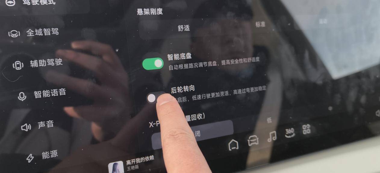 開啟后輪轉向后,抓地力和牽引力明顯更好,讓210kW,465N?m的電機動力得以合理釋放。在車速提高到60km/h后雖仍有車尾滑移尾部滑移,但無需要手動修正方向,車尾穩定性給予駕駛者更強信心。