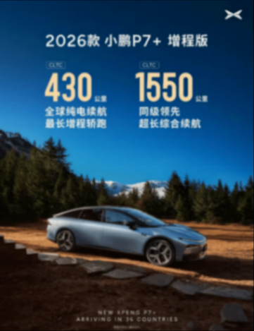 全球化方面,小鵬汽車正加速布局,2026款P7+將同時提供純電動與增程式兩種動力版本,并計劃在36個國家同步上市。何小鵬的規劃是,未來十年小鵬汽車一半的銷量將來自海外市場。