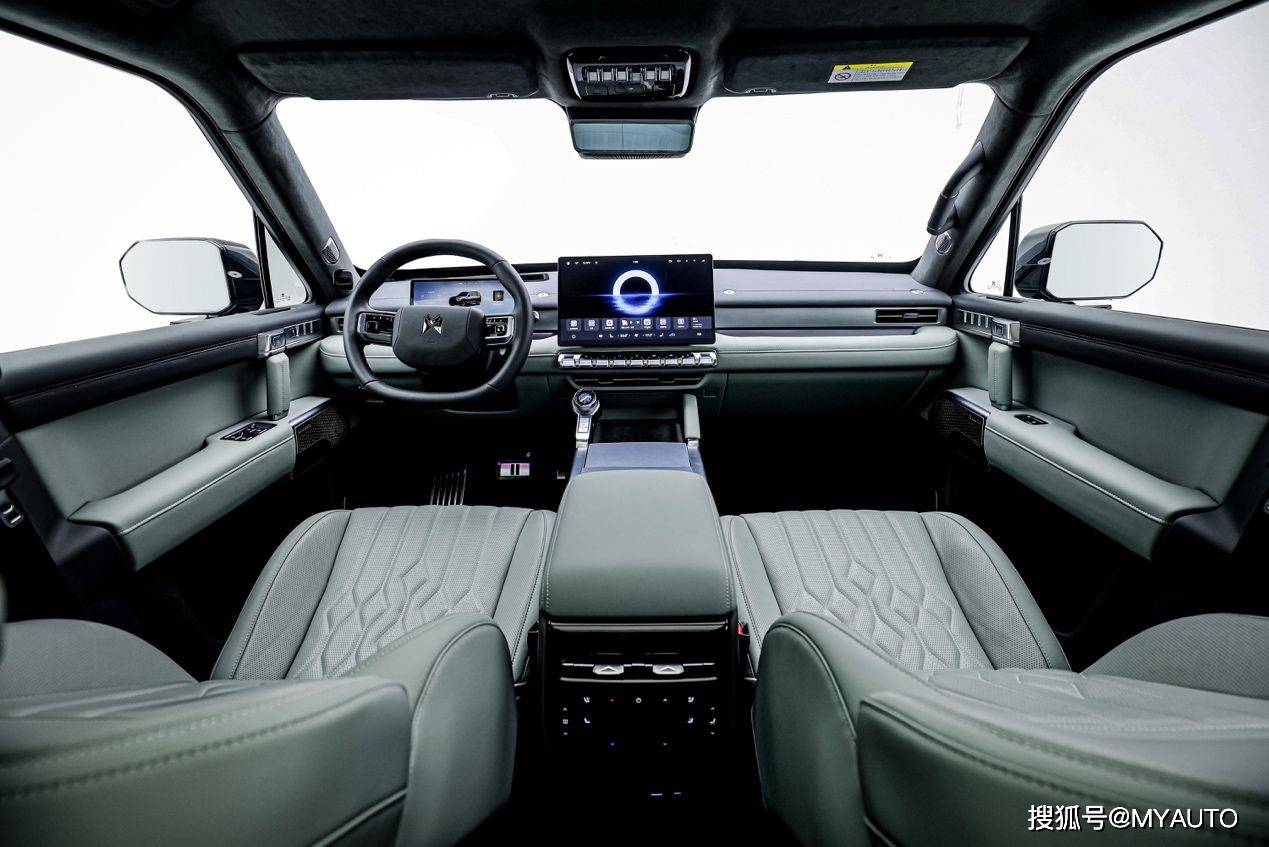 極石ADAMAS和東風猛士M817最大的不同體現在動力系統方面。極石ADAMAS搭載1.5T增程器+雙電機全時四驅,綜合功率350kW,總扭矩740N·m。CLTC工況下純電續航215km,滿油滿電綜合續航達1405km。這套系統在城市通勤時可實現零油耗,長途穿越時加油即可補充能量,完美解決了純電動車主的里程焦慮。