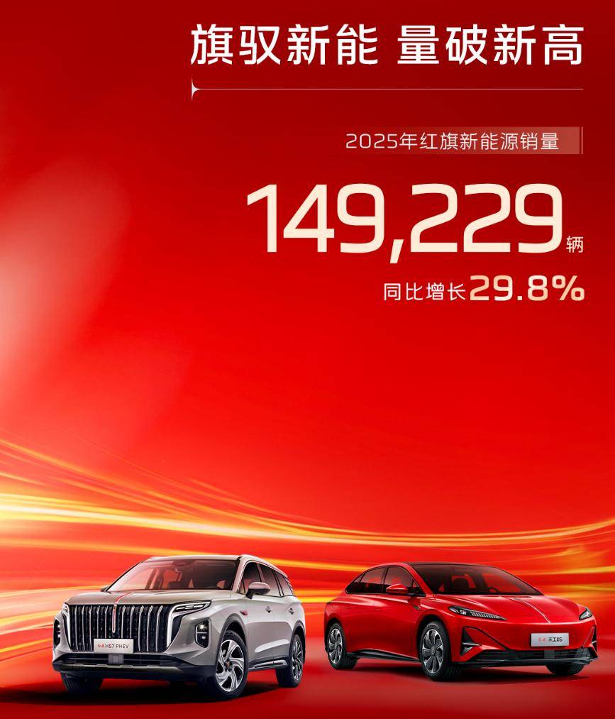 2025年紅旗品牌整體銷量突破46萬臺,其中新能源車的占比持續提升,達到149229臺,同比增長29.8%。