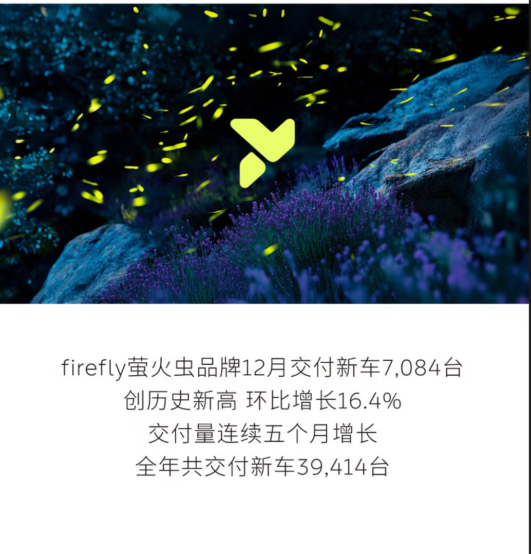 螢火蟲方面,則在12月26日進行了品牌一周年活動,而在12月份交出7084臺成績單,也說明現有產能僅有六七千臺的螢火蟲已經跑出了穩扎穩打的成長曲線。目前唯一的懸念就在于,螢火蟲是否會在近期推出新的特別限量版本車型,再次引發營銷焦點。