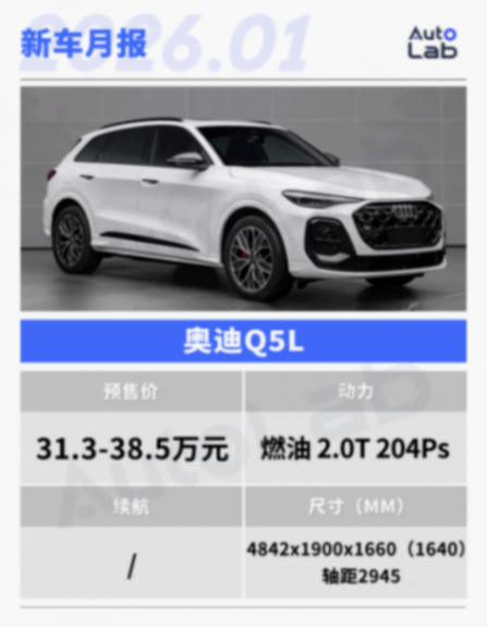 全新一代奧迪Q5L已正式開啟預售,并將在1月內迎來上市。